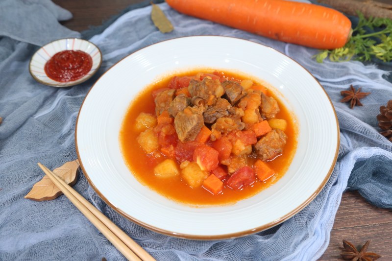 番茄一只;卤牛肉约200克;土豆一只;胡萝卜半只;