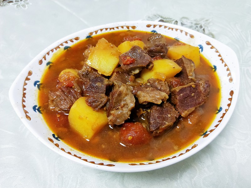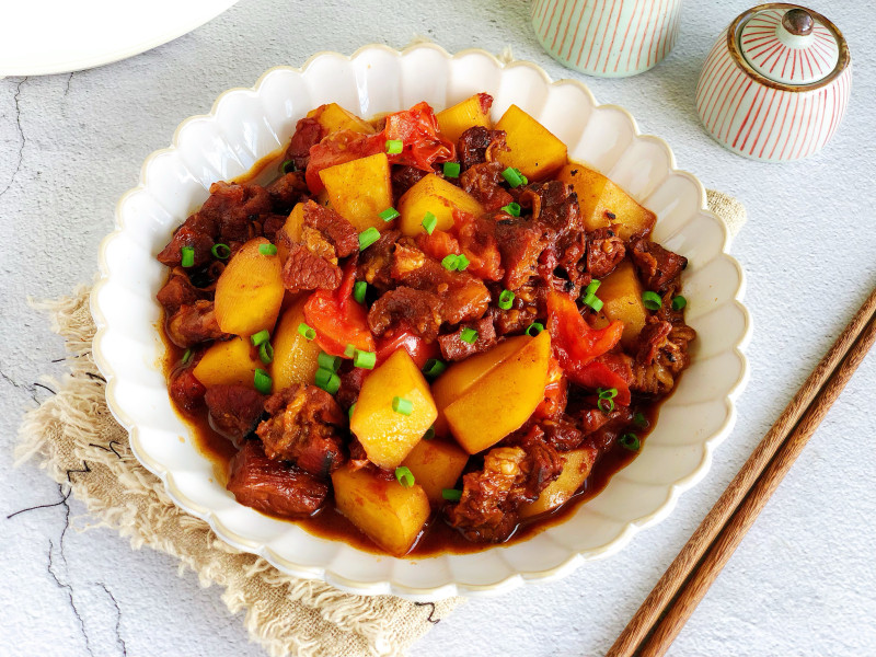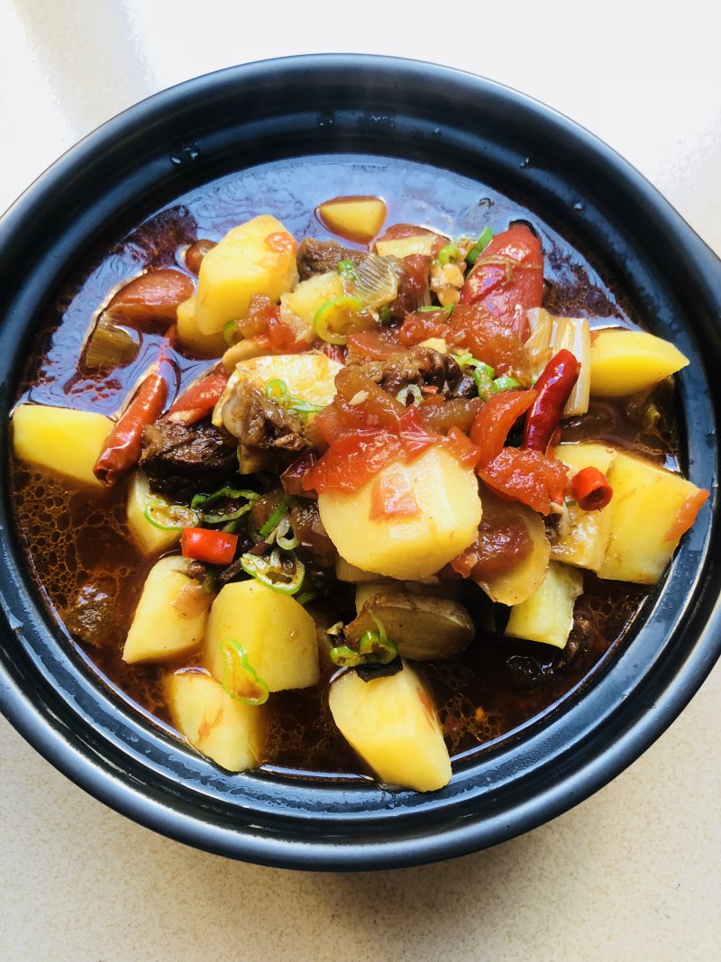 5:再加入切块的土豆,适量盐,再炖20分钟左右即可。