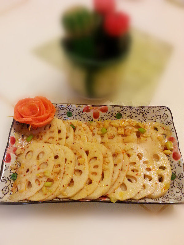 1:莲藕刮去皮后切薄片。我喜欢用水洗去淀粉。