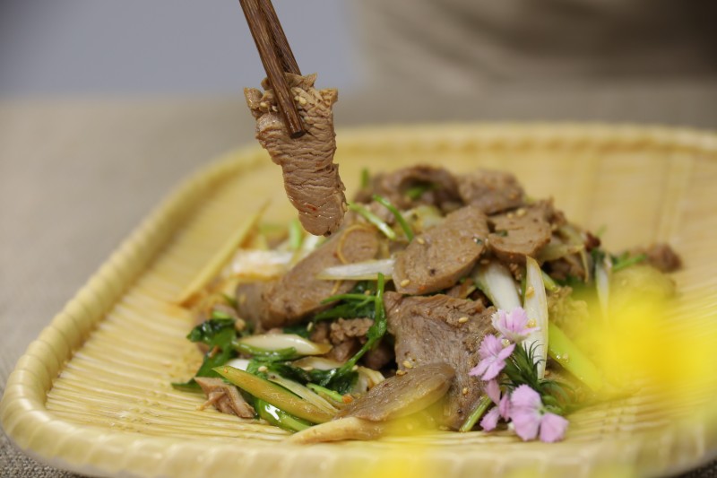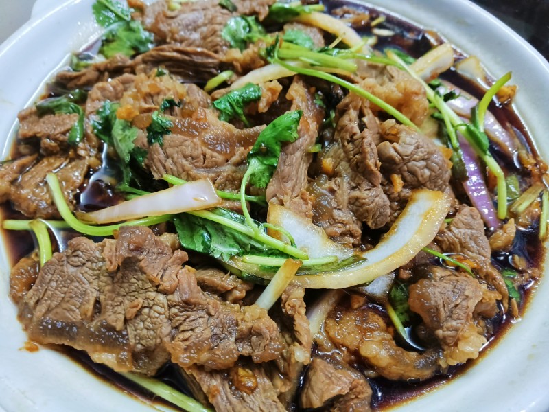 8:搅拌均匀倒入盘中即可,一道简单的凉拌牛肉就做好了。
