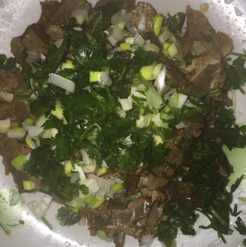 葱1段;香菜2棵;生抽2勺;醋1勺;糖1匙;香油2勺;
