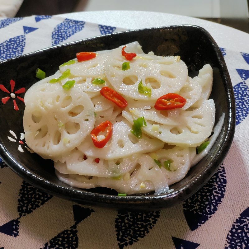 1:水开后藕片下锅煮五分钟捞出过凉水备用(喜欢更脆一点的三分钟就可以哦)。
