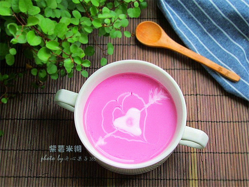 1、不要选用不新鲜有烂味儿的紫薯,紫薯切的块越小越好2、想要颜色粉的非常好看,可以适量减少紫薯份量而增加一些大米和糯米,酸奶等的量,直到达到自己想要的效果即可3、不喜欢酸奶口味的,可以不加酸奶4、根据个人喜好,适量加糖或不加5、消化不好的人可以用大米代替糯米
