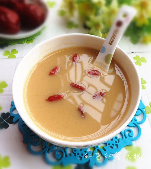 5:听到滴滴声,程序结束,倒出米糊。红枣的皮看起来有红色杂质。