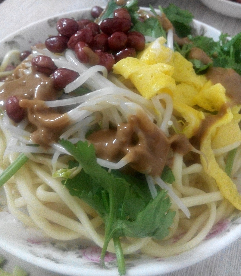 生抽适量;芝麻酱适量;醋适量;咸菜适量;花生米适量;蒜泥适量;