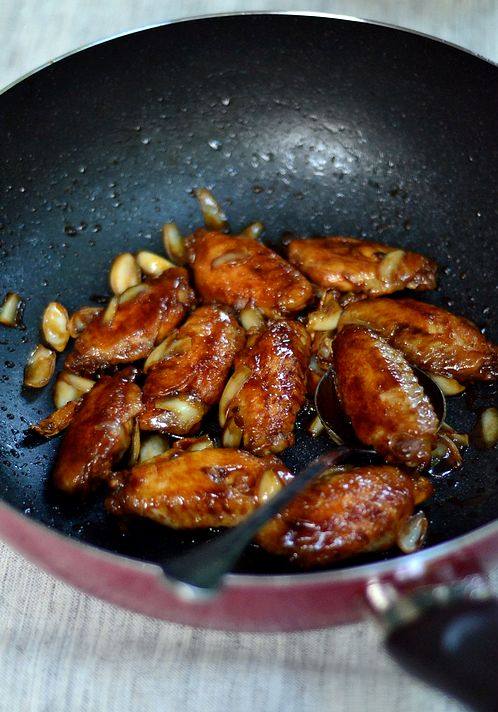 13:至百合稍变透明,汁均匀的裹在鸡翅上就可以了。