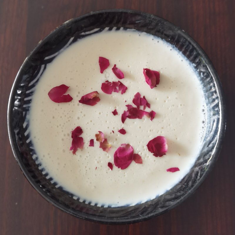 花生一定要炒熟,做出来的花生酪才会醇香可口,生的花生米打有股浓浓的生味,不好喝。玫瑰花也可以换成桂花,根据自己的喜好。