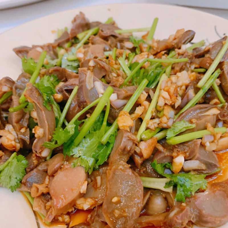 1:鸡肾鸡肠用盐清洗干净,切好。