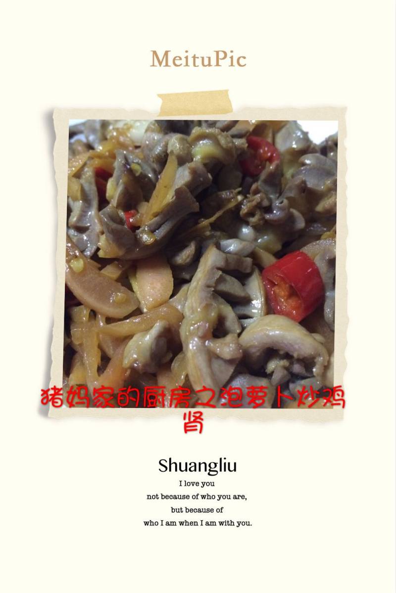 泡椒4个;鸡肾250g;泡姜1块;红尖椒1个;泡萝卜1个;
