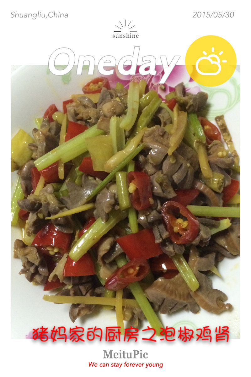 切鸡肾不会切花刀的可以顺着切成薄片。喜欢吃辣椒的可以加多点泡椒。鸡肾提前用盐腌一下,更入味。