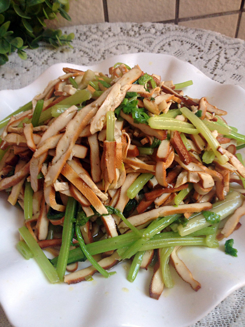 1:将香干和香芹洗净,香干切丝,香芹切段.生姜切丝,蒜切末备用.