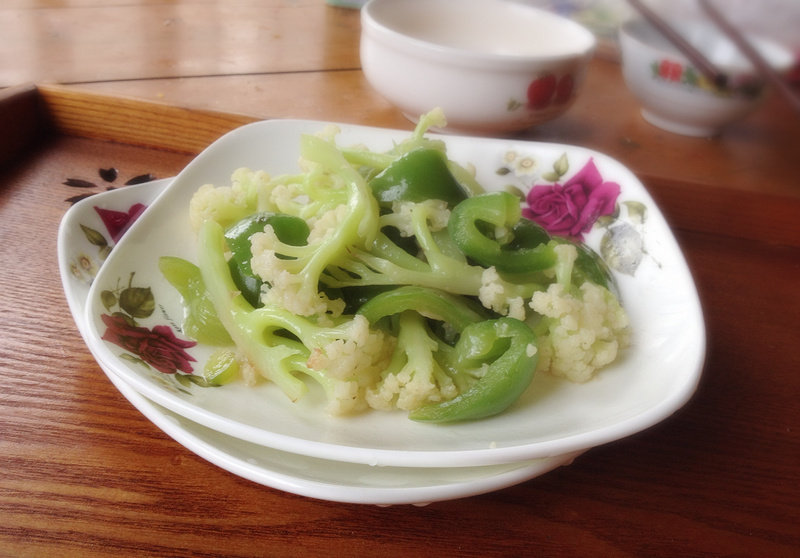 青椒炒有机花菜