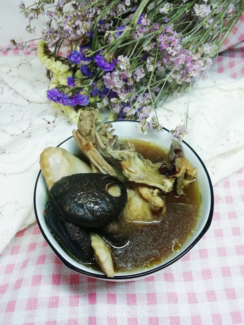 我放的鸡肉不多,所以煲的汤也不多,如果家里人喝的量比较大的话,就要多加点鸡肉煲出来的汤才鲜美,盐要最后放。