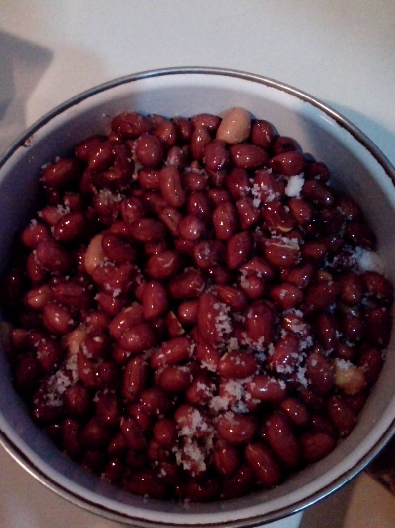 3:花生稍晾凉后搓去外皮。