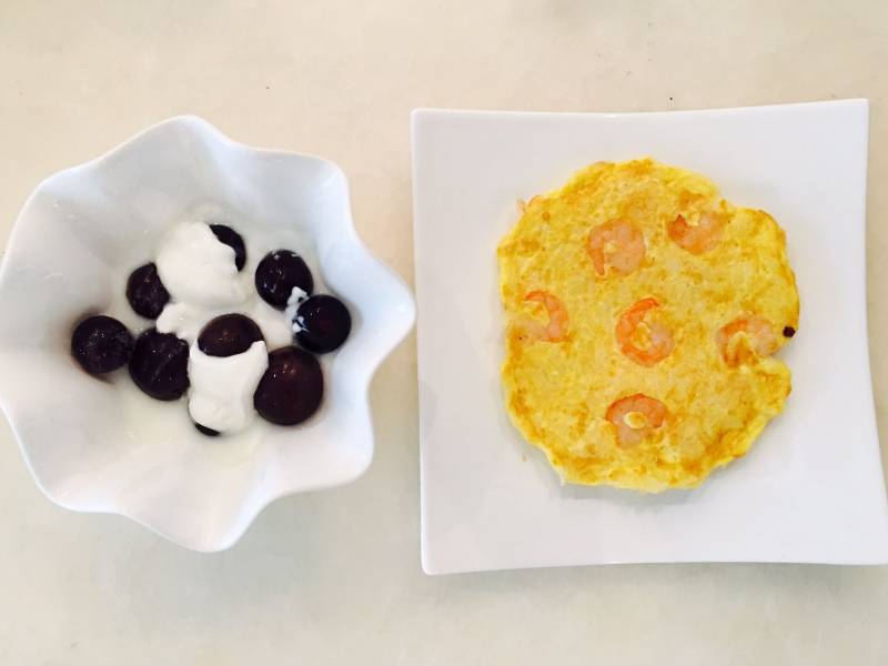 糙米饭100g;炸虾仁5个;鸡蛋2个;