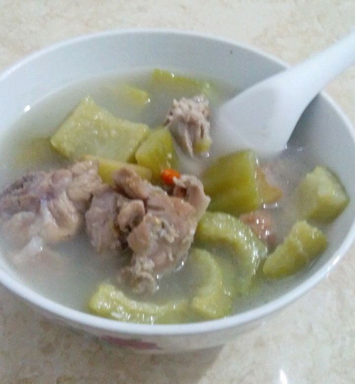 7:煮至苦瓜变色,变软,放适量的鸡精调味,这苦瓜猪骨汤就做好了
