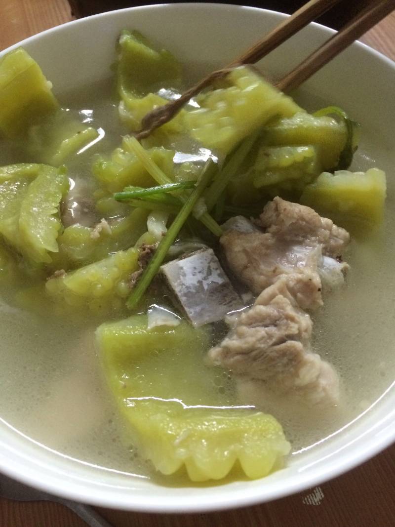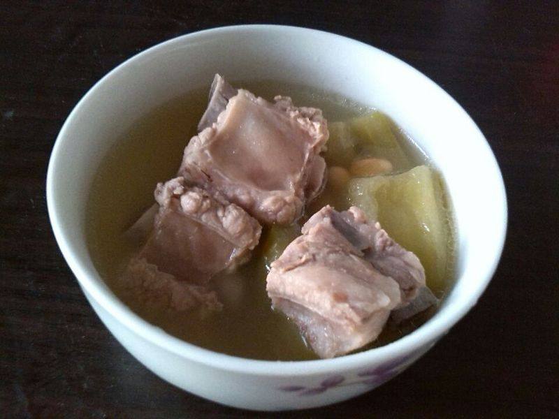 4:煲汤的时间可以自由控制,可以看黄豆软熟了没?排骨不是大骨不用煲太久,差不多的时候放入苦瓜和一小勺醋再煲十五或二十分钟就可以放盐出锅。如果害怕苦瓜苦味太重,可以把苦瓜提前过一下水。