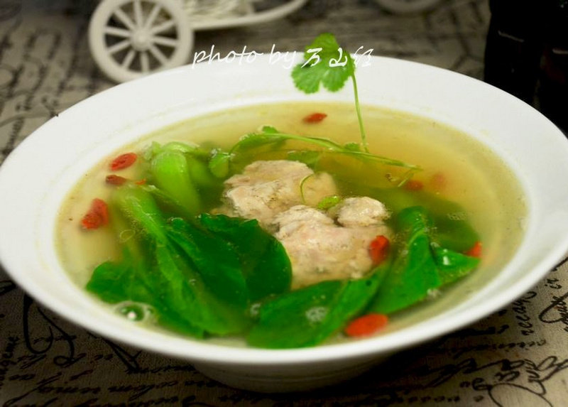 枸杞适量;盐2g;胡椒粉2g;青菜适量;