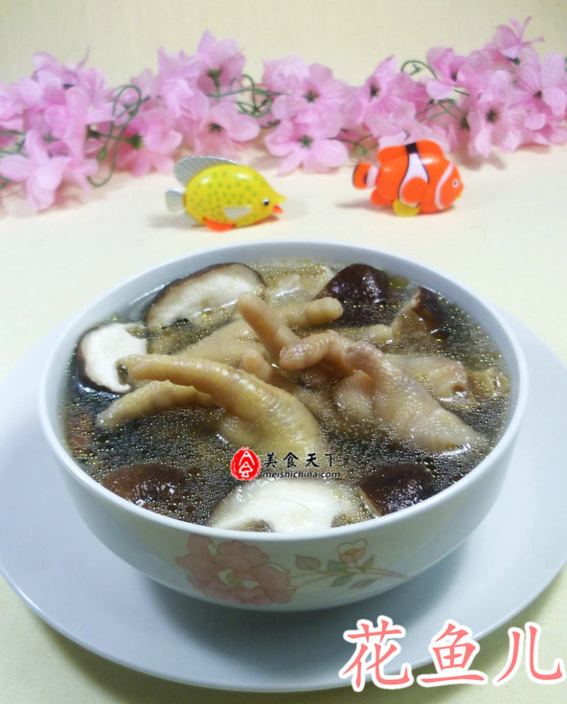 1:材料:新鲜香菇(已清洗)、鸡爪(已清洗)、姜片