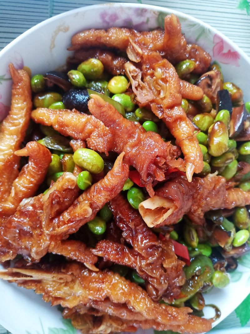 买来的炸凤爪因为起泡比较多,所以更容易入味,炖煮过程中,毛豆也吸收了凤爪的香气,好吃极了!