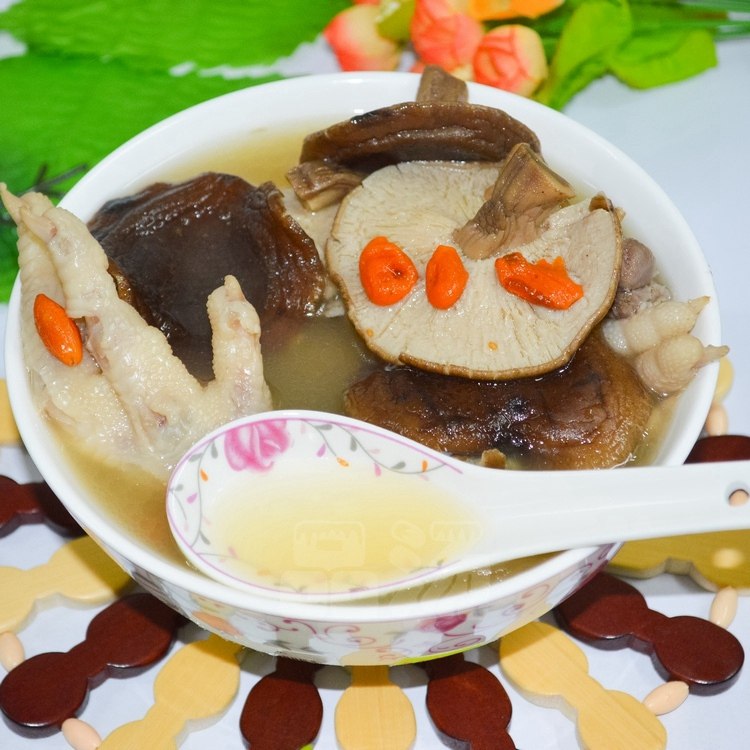6:加入泡发好的香信和枸杞,继续再煲半小时