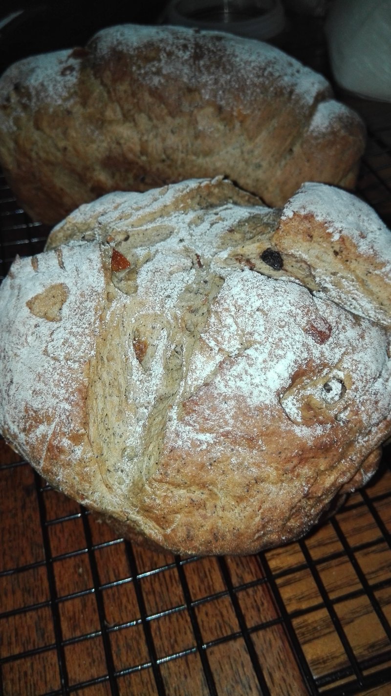 8:经过两次搅拌,开始进入二次发酵阶段了;做到面团发酵到大半桶的状态时,我刚好有事儿就出去了,然后用手机遥控暂停程序什么的,随后觉得差不多了就又遥控着开始烘烤,回到家的时候都已经块出锅啦~