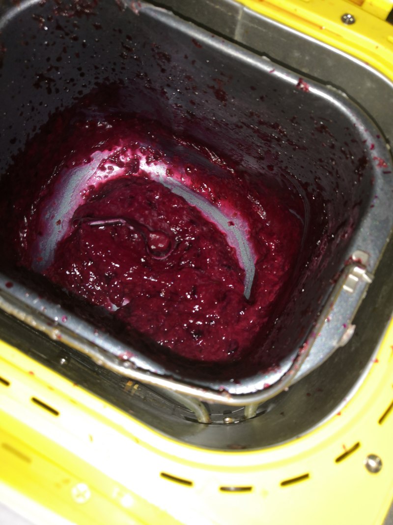 3:将冰糖,半个柠檬挤出汁,碎花瓣倒入面包机后启动面包机果酱程序。