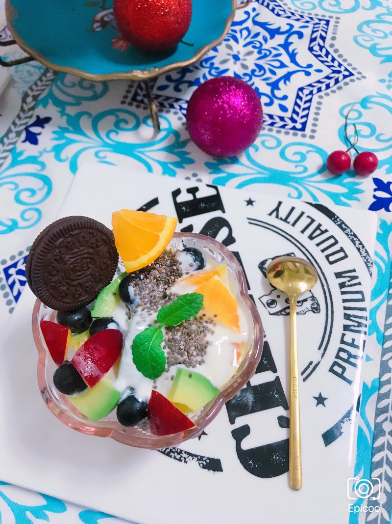 5:一层酸奶,一层奥利奥饼干碎,铺三层,最后放入水果。