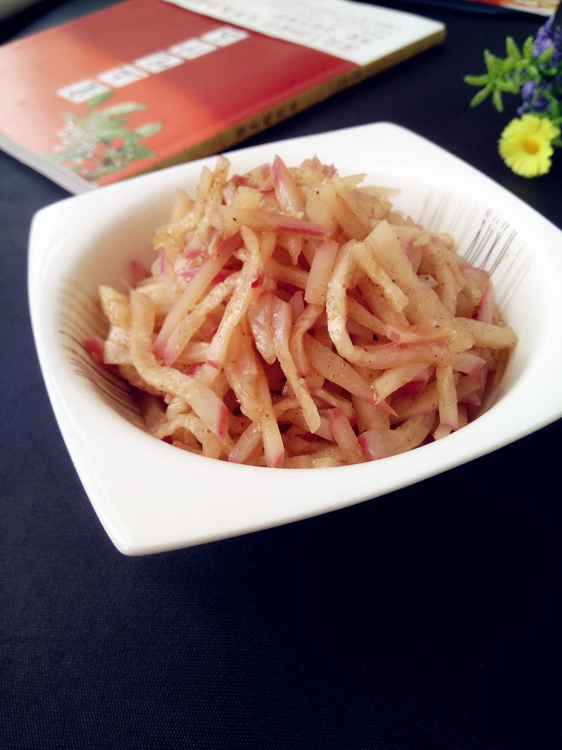 1:旱萝卜洗干净切成条。