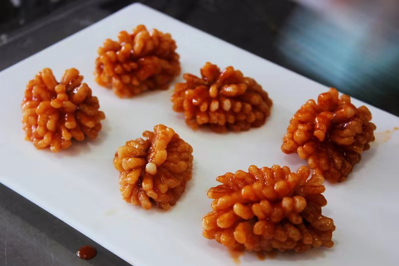 7:放入4成油锅炸制成熟,定型后捞出控油