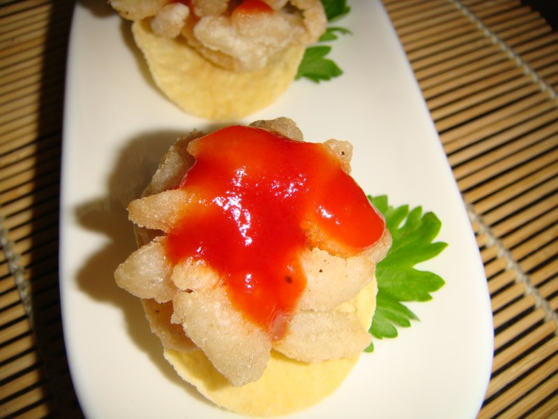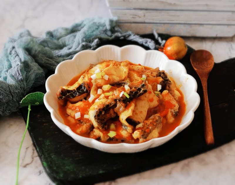 7:在番茄糖醋汁里我加了一点泡椒汁(我自己做的,在我菜谱里有具体做法),酸中带一点微辣,可以去腥,体香。