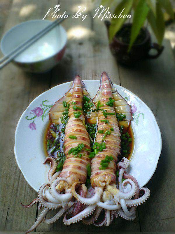 老妈说这种鱿鱼买来就是熟的,所以时间不要蒸太久不然容易老会咬不动的。