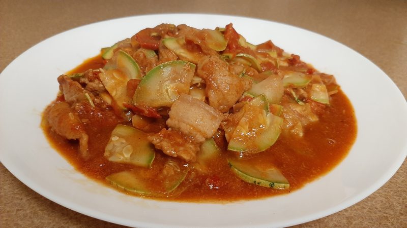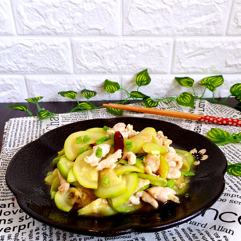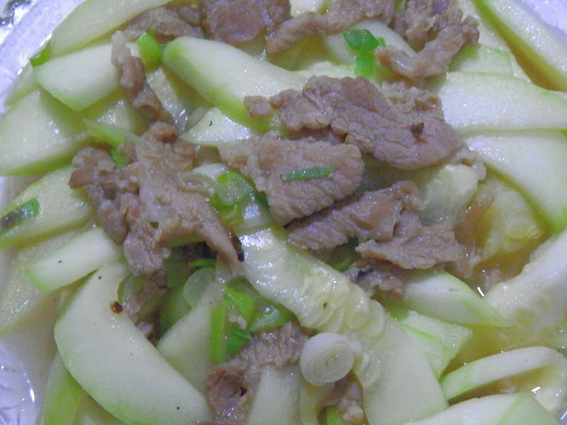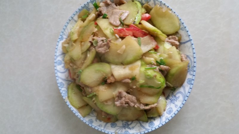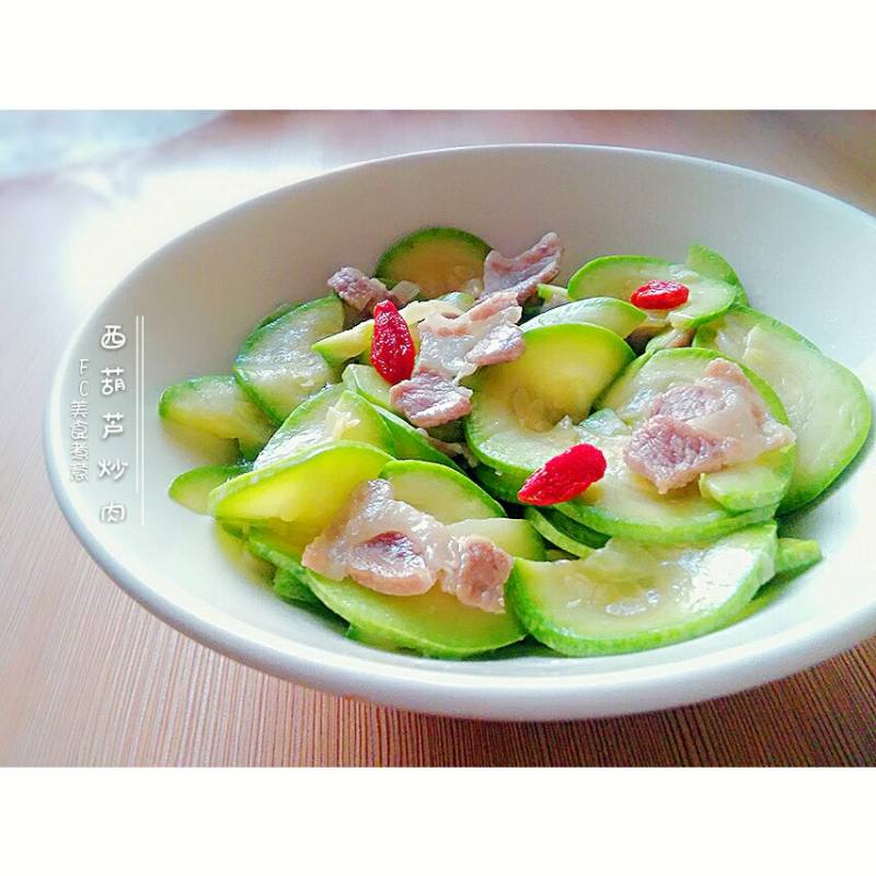 10:西葫芦7成熟时加入肉片继续翻炒片刻即可出锅。