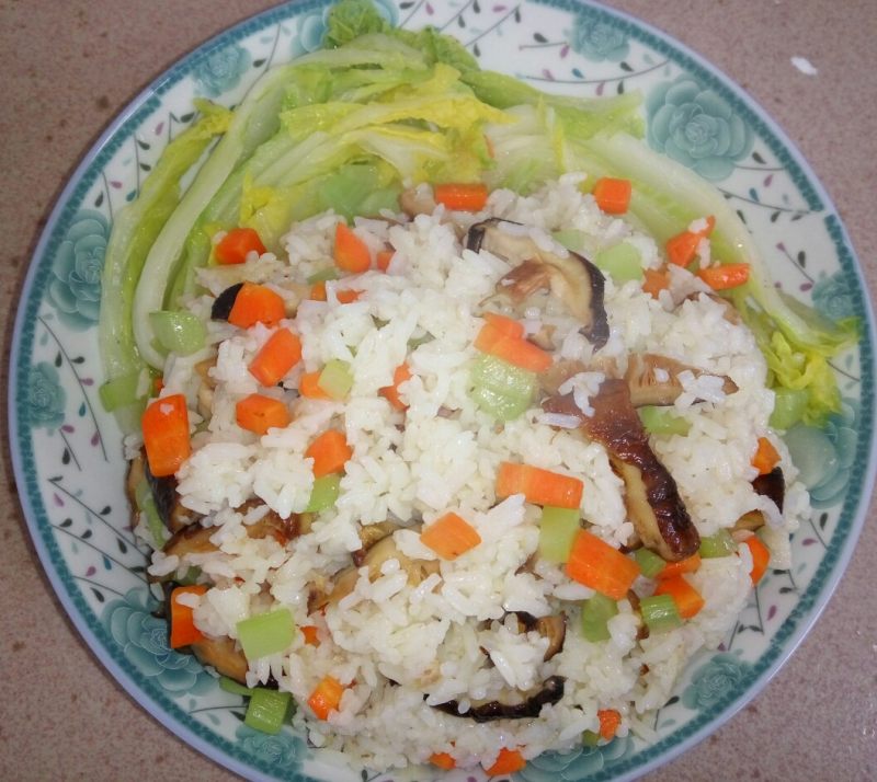 香菇5个;白饭一碗;小白菜半个;胡萝卜半个;
