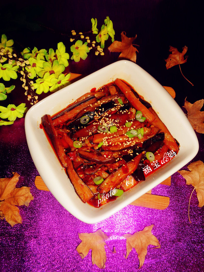 8:茄子熟后加入对好的芡汁收汁起锅!