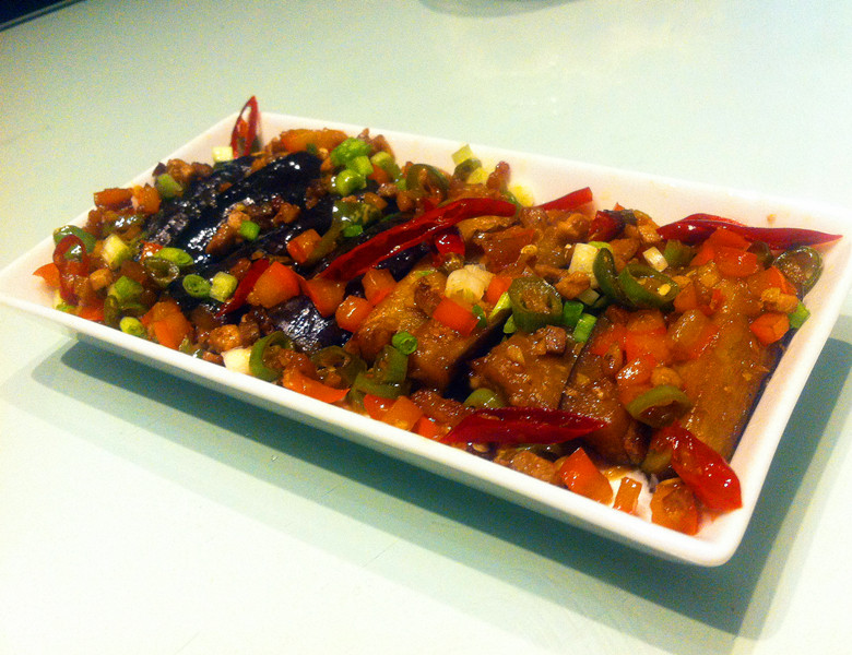 9:猪肉末爆炒。放入茄子。起锅前放入两勺郫县豆瓣酱味道更美味。