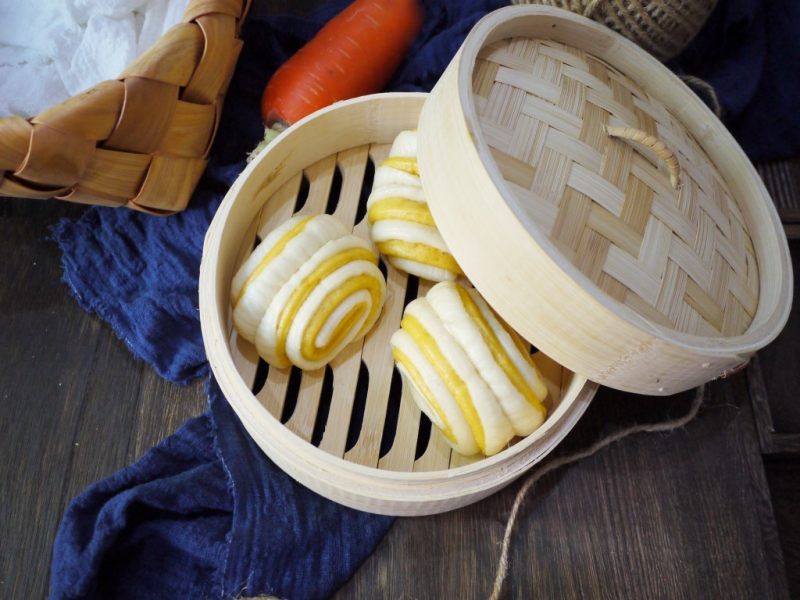 12:用一部分胡萝卜面团,还蒸了小馒头。