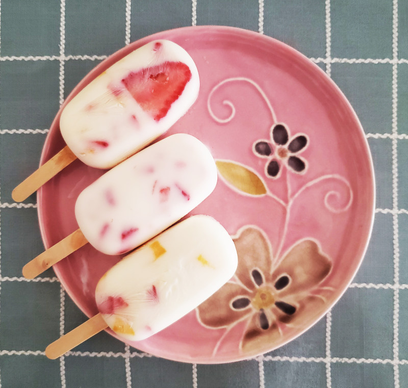 2:将草莓和芒果丁放入酸奶中拌匀,倒入冰激凌模子中。