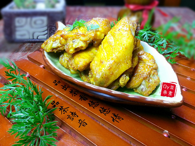 4:一盘又酥又香的咖喱鸡翅做好了,儿子一连吃掉六个,直说太好吃了。