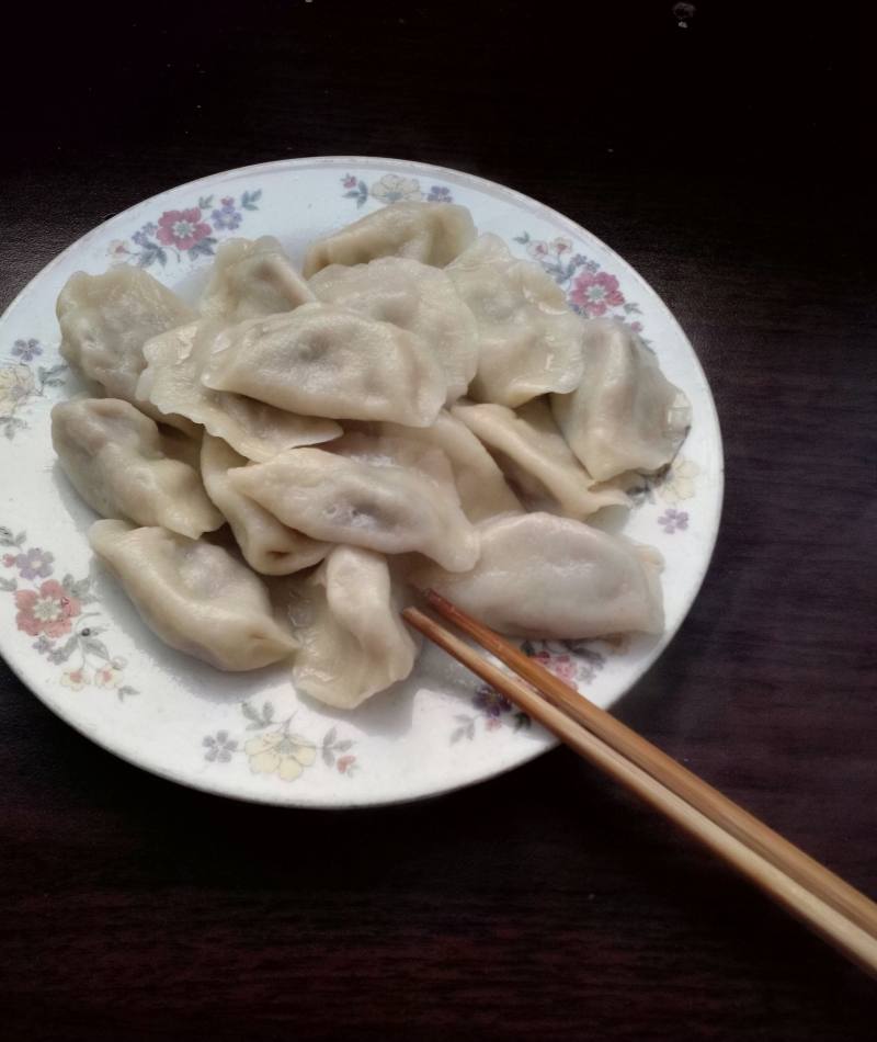 煮饺子时锅里放一小勺食用油煮出的饺子很光滑不粘连,选五花肉做馅比前后腿肉吃起来更滋润