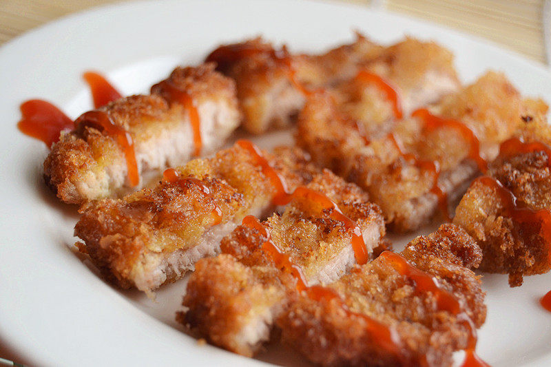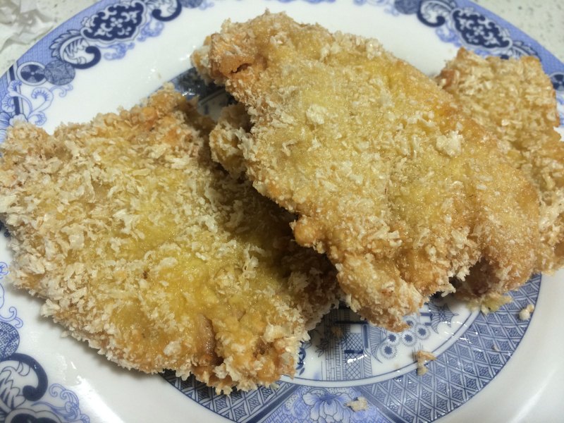 猪排3块;面粉10克;鸡蛋1个;面包糠20克;