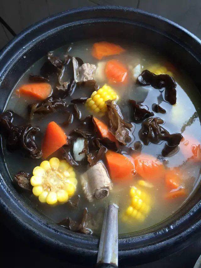 木耳100g(湿);玉米2根;胡萝卜一根;排骨600g;