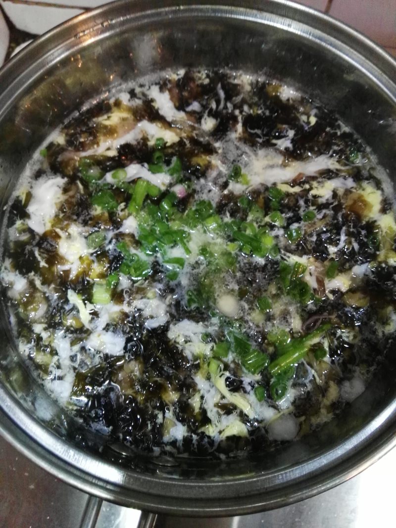 4:烧水,水开后放入紫菜。紫菜一入水即熟。