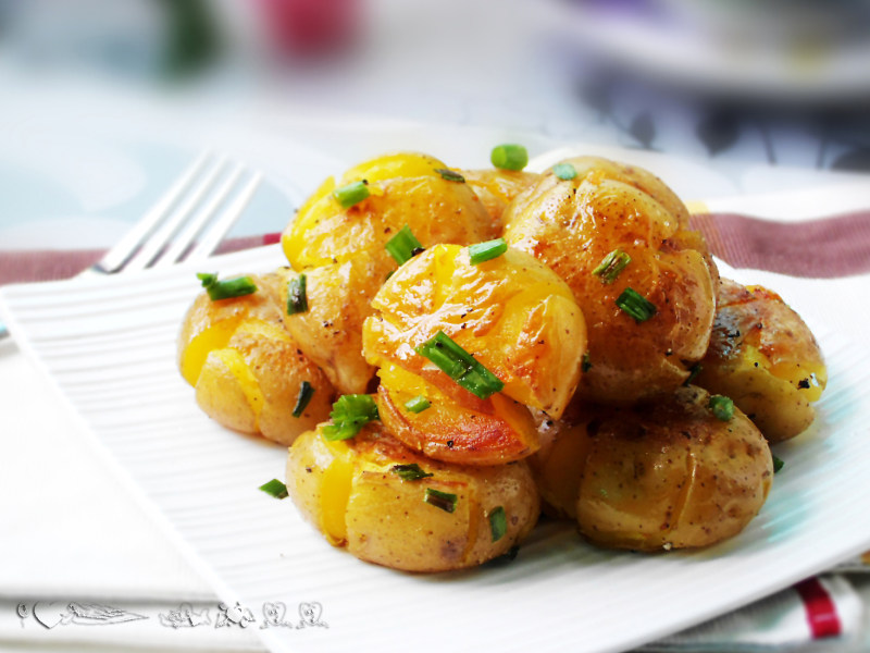 Tips:1.小土豆不去皮的话,煎出来表皮会焦焦的,很好吃哦;2.土豆不要煮太烂,拍扁的时候也不要太用力,轻轻压扁即可;3.调料看自己喜欢,爱吃辣的,加些干辣椒,味道也超棒;4.出锅后趁热吃最好吃啦~