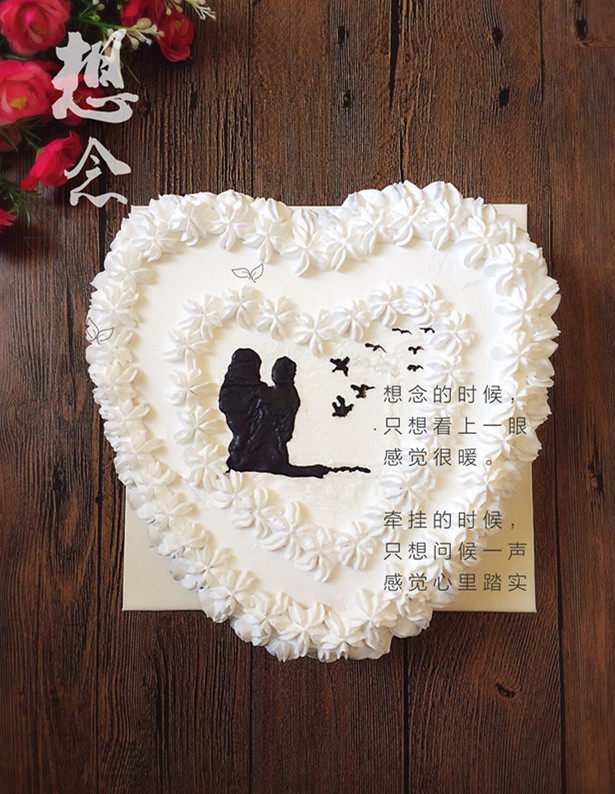 19:用融化的巧克力在糯米纸上画出剪影,移到蛋糕上,再用奶油在四周做一些装饰即可