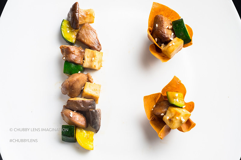 10:我们可以将炒好的鸡丁勺入定型好的云吞盏当中。