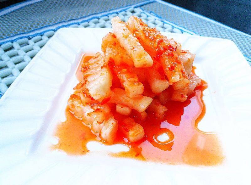 7:搅拌几次后常一下味,淡了可以加少量盐,装入陶瓷碗或玻璃罐中,不锈钢器皿不适合装酸。