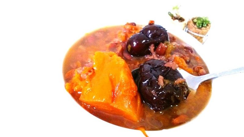 南瓜适量;枸杞适量;红豆适量;红枣两颗;