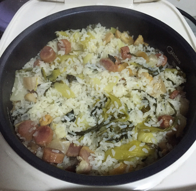 5:根据电饭煲的做饭时间就可以了,等待一锅香喷喷的香肠咸肉菜饭出锅吧