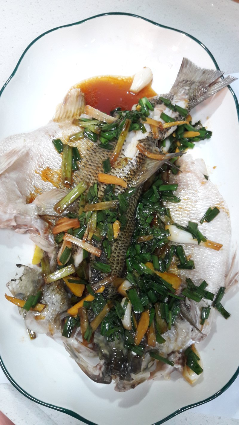 9:取出蒸好的鱼,撒上葱花。